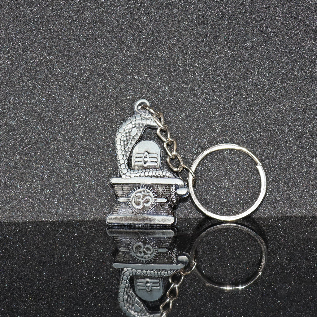 shivling with snake design silver keychain , silver shivling key ring , lord shiva shivling keychain , shivling snake metal key holder , devotional shivling keyring , religious metal keychain shivling design , mahadev shivling keychain , shivling naag design keychain , silver toned shivling keychain , divine shivling key ring , faith based shiva keychain