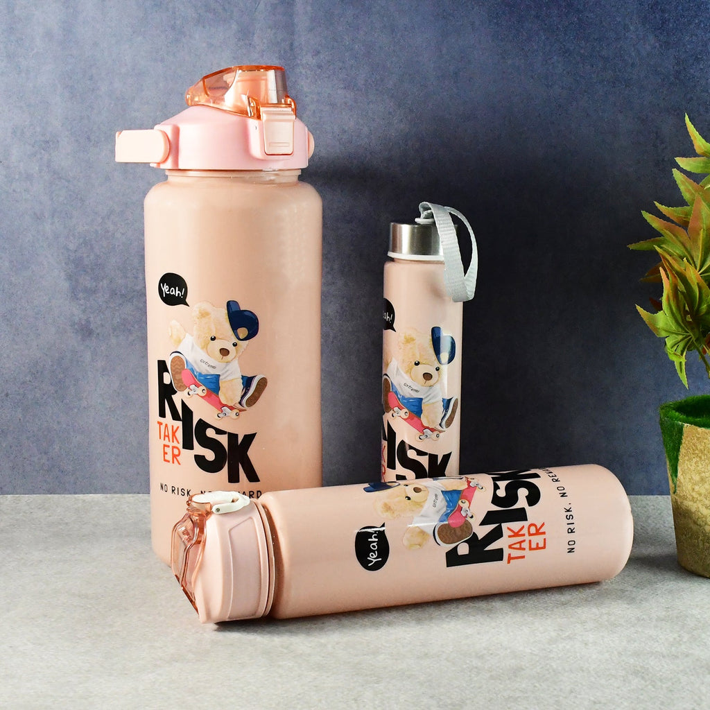 Stay hydrated through the day with this versatile 3-bottle combo designed for family use and on-the-go convenience. The set includes a 2 L wide-mouth jug with a sturdy carry handle for all-day hydration, a 900 ml flip-top sipper bottle for workouts and commuting, and a 300 ml slim bottle with wrist strap for kids or short trips. Each bottle features a tight, spill-resistant closure and a smooth, easy-clean interior that doesn’t retain odour, making them ideal for water, infused drinks, and cold beverages. Lightweight yet durable, the bottles fit easily in bags, cup holders and side pockets.