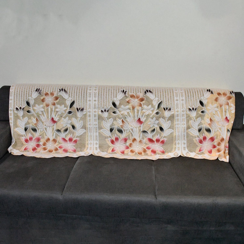 elegant floral sofa protector cover, premium textured fabric sofa runner, 3-seater sofa cover dust resistant, spill resistant home décor sofa cover,textured fabric sofa slipcover 3 seater, premium home furnishing sofa cover, luxury sofa cover floral design,spill proof couch cover decorative, scalloped border sofa runner cover, multipurpose sofa protector cover floral