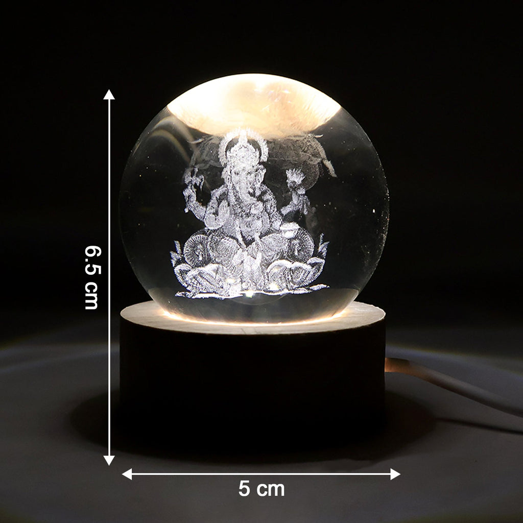 Ganpati 3D Crystal Ball lamps With Wood Base for Bedroom 3D Lamps for Home Decoration 3D Crystal Ball Night Light Gifts for Women Gifts for Men Room Decor Items for Bedroom for Friend and Family (1 Pc)