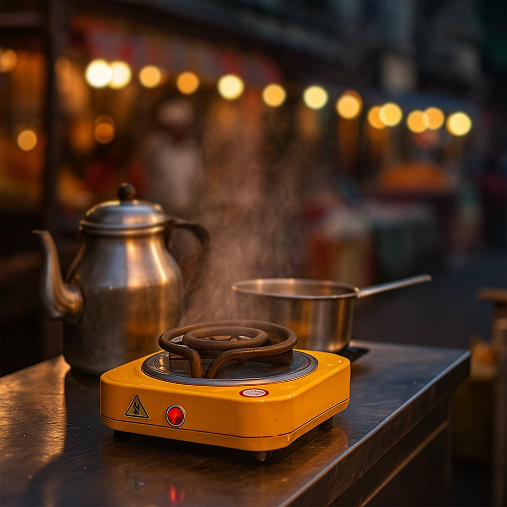 Brew tea, boil water, or warm small pots anywhere with this compact single-coil electric hot plate. The sturdy metal housing and raised tubular coil deliver steady, even heating, while the front power indicator clearly shows when the unit is on. Anti-skid feet keep the cooker stable on counters, and the braided mains cord adds durability for everyday use. Lightweight and easy to store, it’s a practical extra burner for quick tasks in kitchens, hostels, office pantries, or travel stays—no gas needed.
