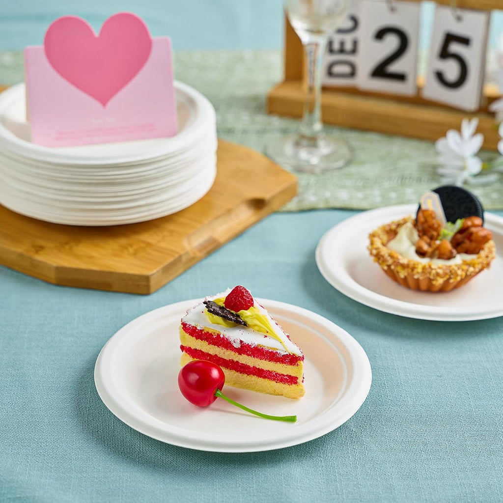 Choose cleaner, plastic-free serving with these 6-inch compostable plates made from premium bagasse (sugarcane fiber). Compact yet robust, they’re perfect for snacks, desserts, starters, and tasting portions. The molded construction resists oil and moisture while maintaining a smooth, food-safe surface that doesn’t affect taste. Plates are microwave-safe for quick reheating and freezer-safe for short-term chilling—ideal for fast service at homes, cafés, and catered events. After use, they’re designed to break down in composting conditions, helping cut single-use plastic and foam waste.