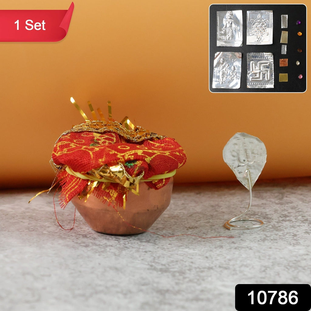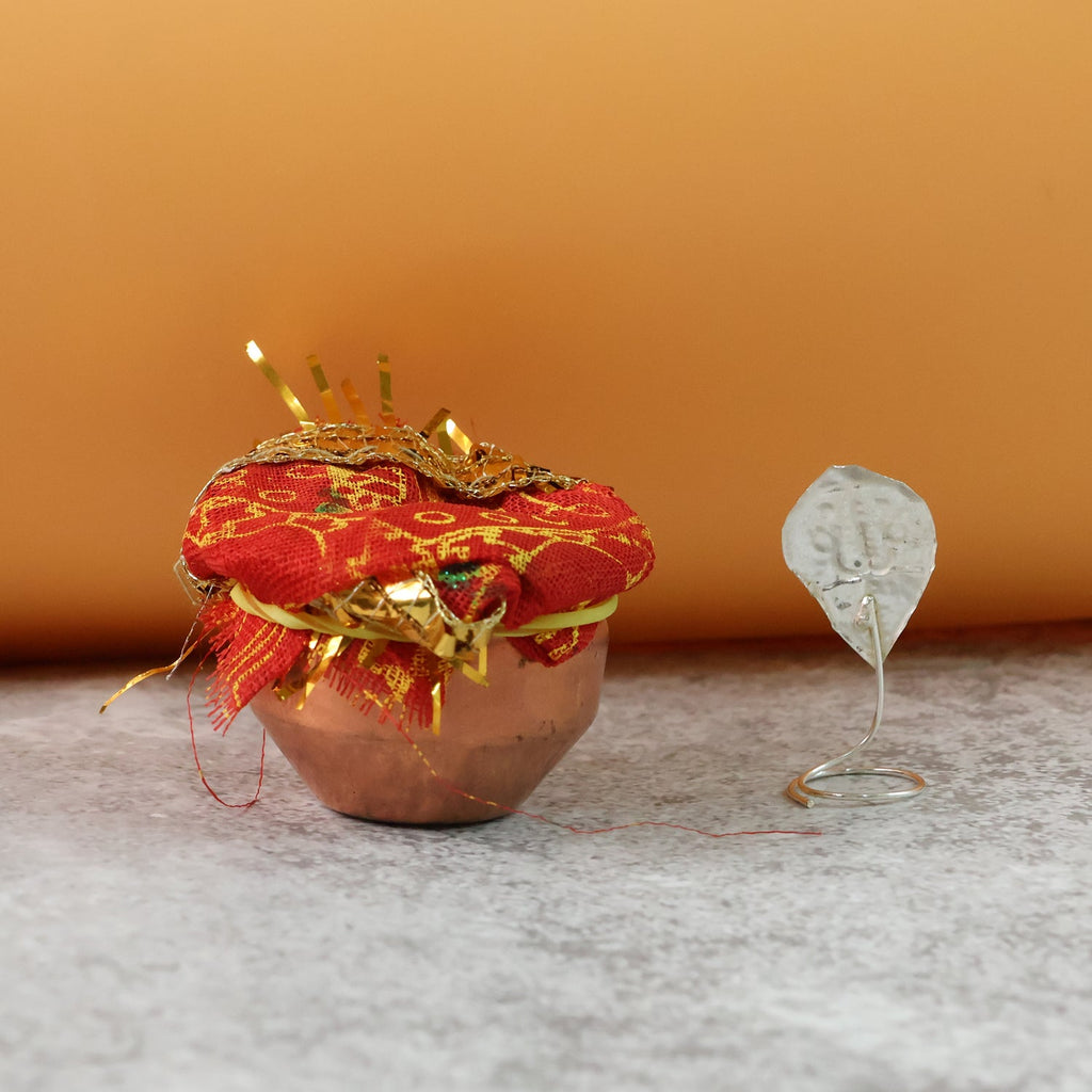 mini pooja kalash , decorative copper kalash , Diwali pooja set , griha pravesh pooja items, mandir accessories , cloth-covered kalash , yantra pooja set , navratna pooja pieces , Hindu pooja set , traditional pooja items , small pooja mandir set , religious gift for puja