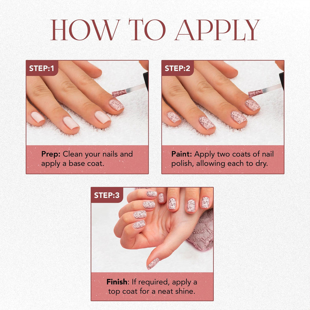 • Glitter Nail Paint with a sparkling, glamorous finish.