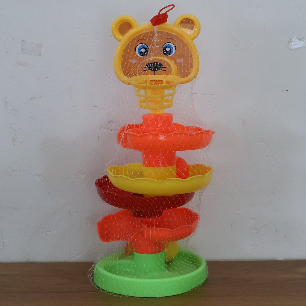 This vibrant and engaging Bear Face Rolling Ball Drop Tower Toy is designed to keep children entertained while stimulating their cognitive and motor skills. The toy features a cheerful bear face on top and multiple colorful spiral layers where children can drop balls and watch them roll down in a fun, swirling motion. The bright colors, interactive design, and smooth edges make it both safe and enjoyable for young children. It encourages hand-eye coordination, problem-solving, and imaginative play while providing endless hours of entertainment.