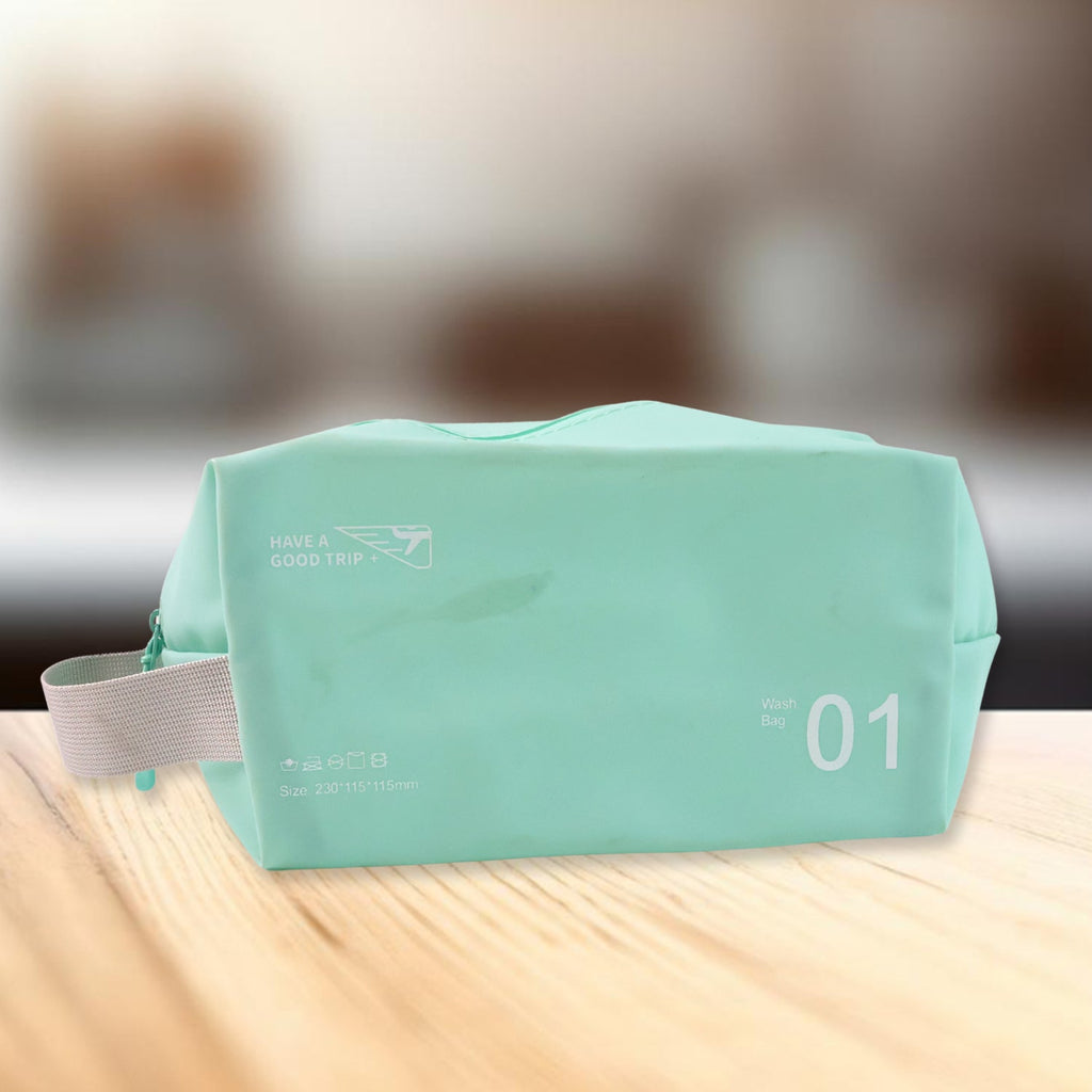 Pack smarter with this compact waterproof wash bag. Made from soft, flexible EVA/TPU plastic, it protects your toiletries and gadgets from spills and splashes while keeping your suitcase tidy. The wide-mouth zipper opens fully so you can drop in bottles, trimmer, deodorant, brushes, makeup and more. A sturdy side handle lets you carry or hang it in the bathroom, and the rectangular base stands upright on counters for easy access. Lightweight yet durable—perfect for trips, gym sessions or everyday storage.